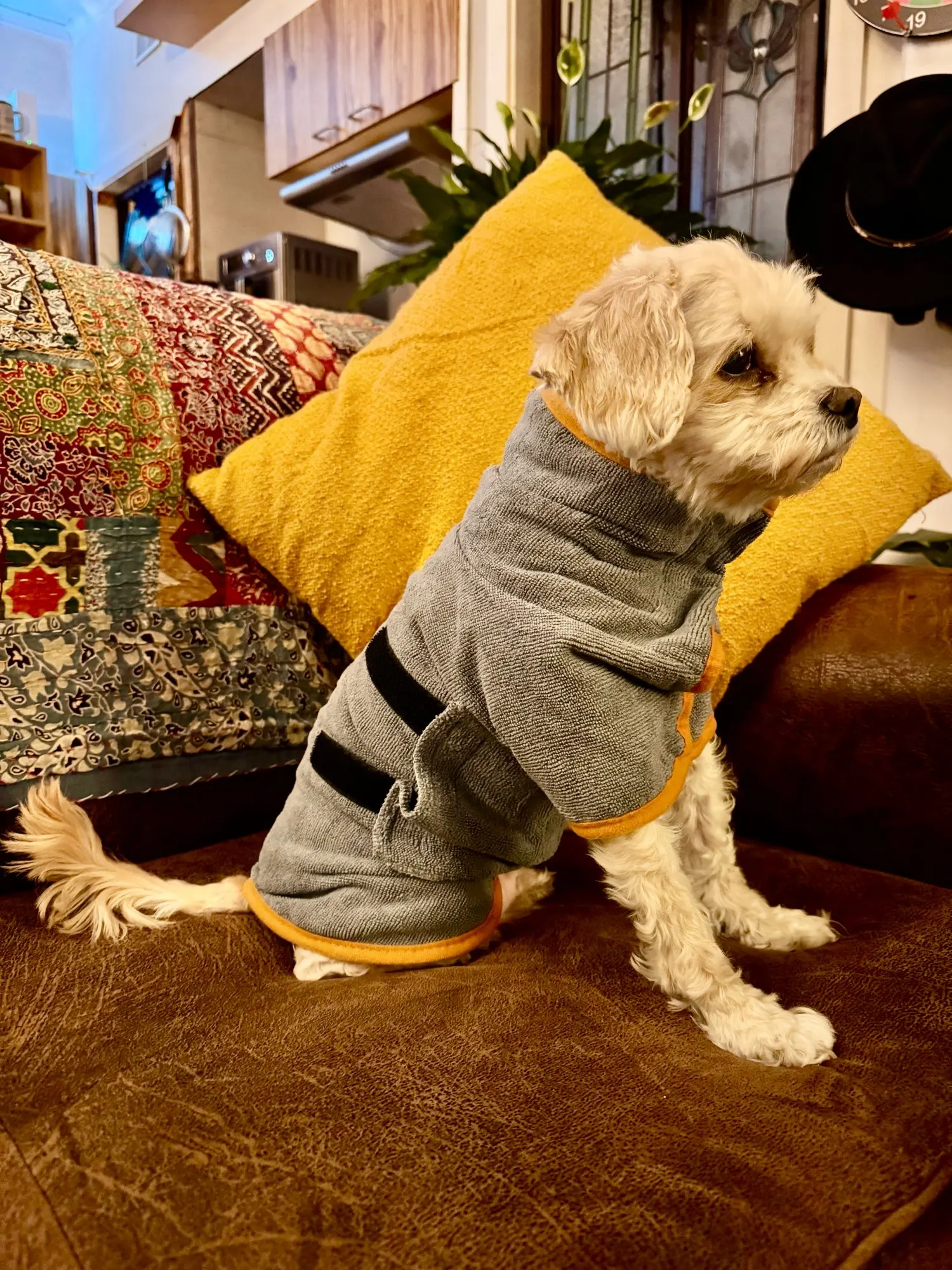 Whether it’s post-bath zoomies, muddy hikes, or a lakeside camping trip, keep your dog warm, dry, and your space protected , grab the Dog Bathrobe Towel today.